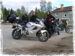 Nachdem dem Frühstück brachen wir gemeinsam Richtung schwedisch/finnische Grenze bei Kaaresuvanto auf. Leichter Nieselregen begleitete uns. Während einer kleinen Erholungspause nach Schotterpisten stieß Bernd aus Göttingen mit seiner 1200er Bandit zu uns. Er fragte, ob er weiter gen Norden mit uns mitfahren können. Wir stimmten dem zu und nun waren wir bereits drei "Alleinreisende". So fuhren wir weiter durch Finnland und schließlich Norwegen bis kutz hinter Alta. Nun waren wir dem Kap bereits sehr nahe gekommen, was an den Temperaturen kurz über dem Gefrierpunkt zu spüren war. Dass wir zu dritt waren, machte die Entscheidung bei einem Preis von 47 € pro Person für ein gemeinsames Zimmer wesentlich leichter. So konnten wir Sachen trocknen, anständig kochen und richtig heiß duschen. Gegen 01.00 Uhr nachts war es dann Zeit zum Schlafen.