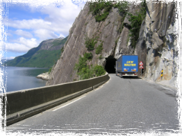 Motorradfahren in seiner Vollendung, so würde ich den heutigen Tag beschreiben. Heute fuhr ich die legendären "Atlantic Routes" auf der Insel Averoja. Auf dem weiteren Weg erklomm ich die Trollstiegen, danach fuhr ich durch schneebedeckte Hochebenen um anschließend allmählich ins immer grüner werdenede Valldal hinab zu fahren. Entlang reißender Flüsse und herabstürzender Wasserfälle verschlang ich jede Kurve mit Genuss. Von Stranda aus nahm ich die Fähre über den Geirangerfjord, um schließlich über Styrn bis kurz vor Utvik zu fahren. Es hatte heute wieder einige Tropfen Regen gegeben. Somit nahm ich mir wieder einmal eine Hütte. Diese befand sich direkt am Ufer des Nordfjords. Diese bot mit Küche, Dusche, Fernseher und Terasse reichlich Luxus für umgerechnet 25 €. Nach Essen und Duschen saß ich ewige Zeit auf der Terasse und wünschte mir meine Frau und Kinder herbei. Erst weit nach Mitternacht bin ich dann in mein Bett gekrochen.