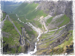 Motorradfahren in seiner Vollendung, so würde ich den heutigen Tag beschreiben. Heute fuhr ich die legendären "Atlantic Routes" auf der Insel Averoja. Auf dem weiteren Weg erklomm ich die Trollstiegen, danach fuhr ich durch schneebedeckte Hochebenen um anschließend allmählich ins immer grüner werdenede Valldal hinab zu fahren. Entlang reißender Flüsse und herabstürzender Wasserfälle verschlang ich jede Kurve mit Genuss. Von Stranda aus nahm ich die Fähre über den Geirangerfjord, um schließlich über Styrn bis kurz vor Utvik zu fahren. Es hatte heute wieder einige Tropfen Regen gegeben. Somit nahm ich mir wieder einmal eine Hütte. Diese befand sich direkt am Ufer des Nordfjords. Diese bot mit Küche, Dusche, Fernseher und Terasse reichlich Luxus für umgerechnet 25 €. Nach Essen und Duschen saß ich ewige Zeit auf der Terasse und wünschte mir meine Frau und Kinder herbei. Erst weit nach Mitternacht bin ich dann in mein Bett gekrochen.